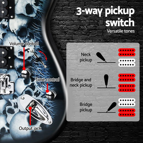 And to make things even easier for you to get started on your music escapades, our combo set also includes a 20W guitar amplifier with controls for bass, middlle, treble, gain. There is also a headphone input to stop the neighbours from complaining night and day. So rock on with the Alpha Electric Guitar Combo Set for heaps of awesome coolness. Get yours today.